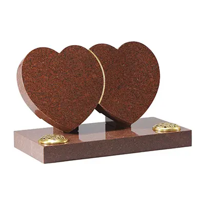 This marker memorial features ruby red granite double hearts on a base. This design provides a beautiful tribute for your loved one.