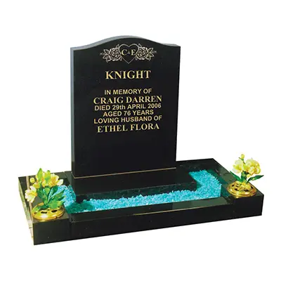 The black granite small kerb memorial. This intricate design features a laser etched heart and roses ornament, and provides a beautiful tribute for your loved one.