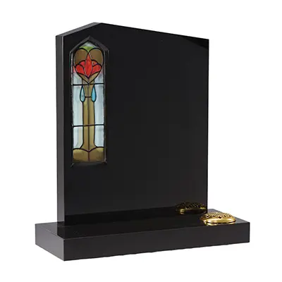 The black granite headstone with optional stained glass window. This beautiful design provides a personalised memorial for your loved one.
